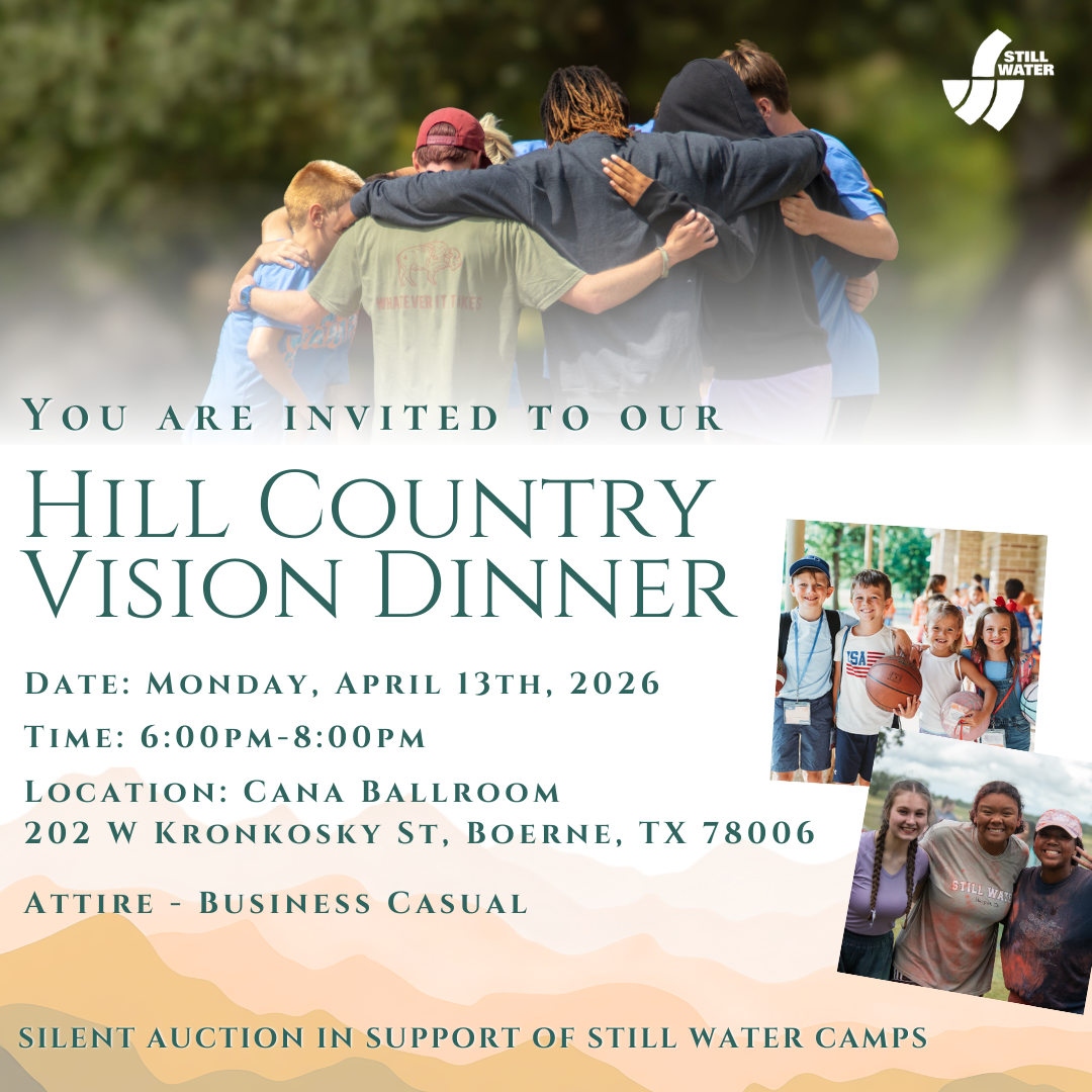 Attend the Vision Dinner as our guest and join us for an evening dedicated to sharing the mission, vision, and future of Still Water Camps.