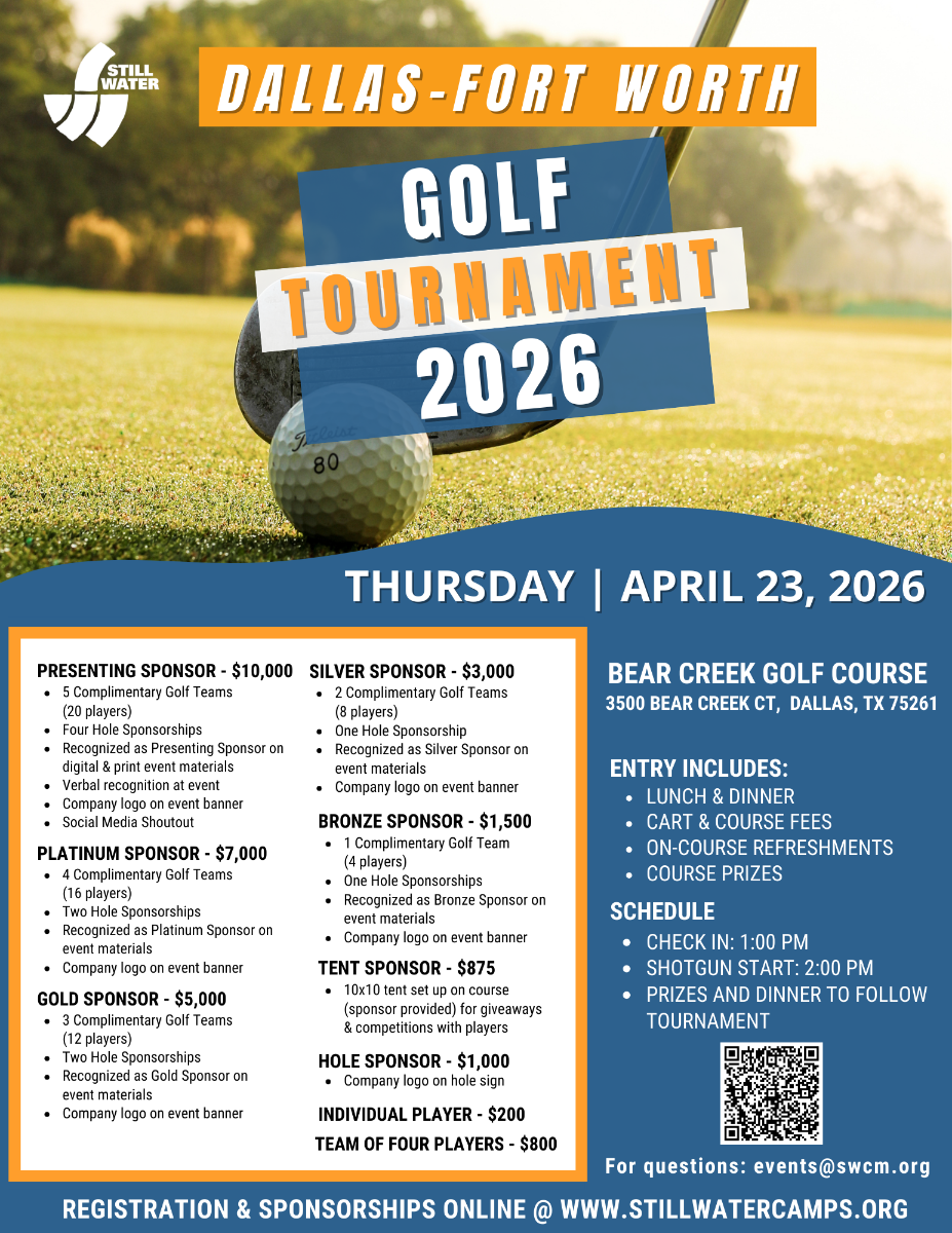 5 Complimentary Golf Teams (20 players), Four Hole Sponsorships, Recognized as presenting sponsor on digital & print event materials, Verbal recognition at event, Company logo on event banner, Social Media Shoutout